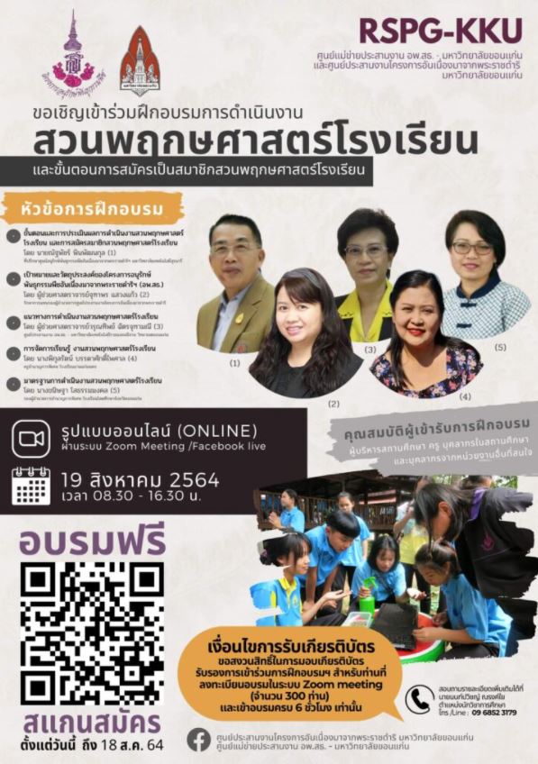 ประชาสัมพันธ์ การดำเนินงานสวนพฤกษศาสตร์โรงเรียน และขั้นตอนการสมัครเป็นสมาชิกสวนพฤกษศาสตร์โรงเรียน วันพฤหัสบดี ที่ 19 สิงหาคม พ.ศ.2564 เวลา 08.30 น. – 16.00 น. โดยศูนย์แม่ข่ายประสานงาน อพ.สธ. มหาวิทยาลัยขอนแก่น