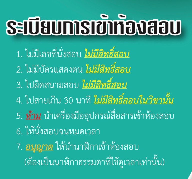 1. ไม่มีเลขที่นั่งสอบ ไม่มีสิทธิ์สอบ