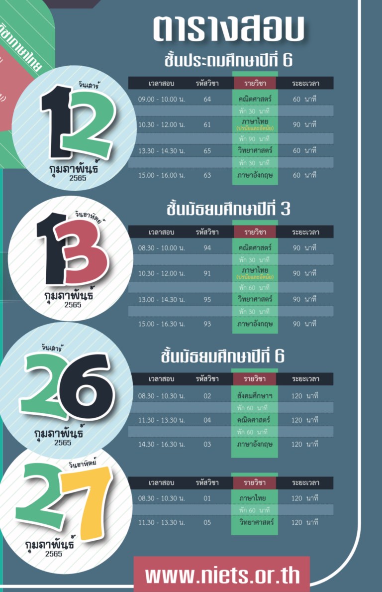 ป.6 สอบ 12 ก.พ. 65 ประกาศผลสอบ 24 มี.ค. 65