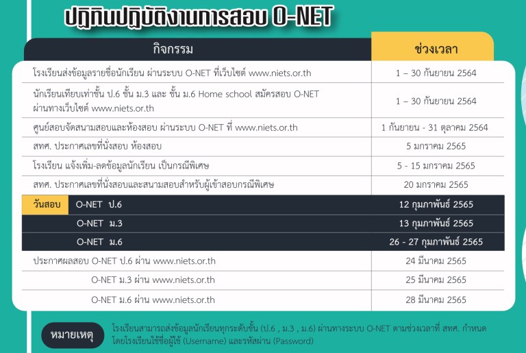 ประกาศกำหนดการสอบ O-NET ปีการศึกษา 2564