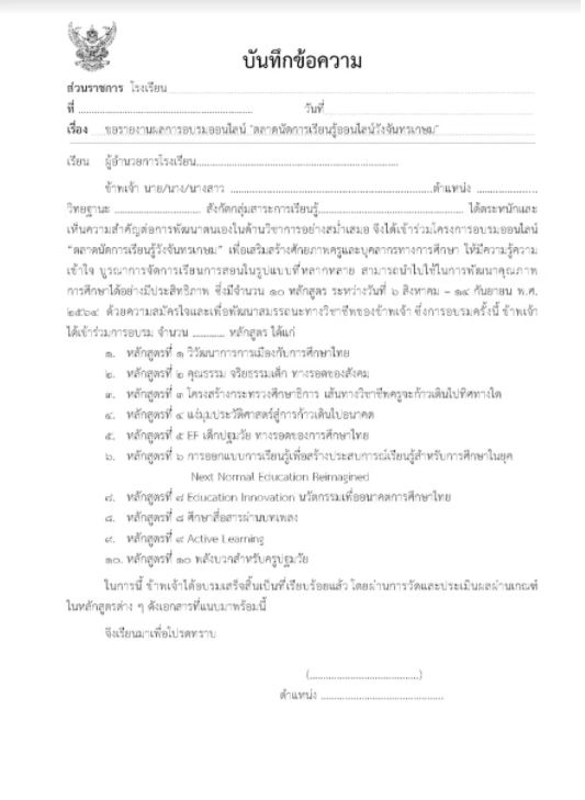 วันนี้ ใบงาน.คอม ข่าวการศึกษา ได้นำไฟล์ตัวอย่างรายงานอบรมออนไลน์ ตลาดนัดการเรียนรู้ มาฝากกัน ซึ่งเป็นไฟล์ในรูปแบบแก้ไขได้ โดยไฟล์นี้เป็นไฟล์เครดิตของ ห้องสื่อครูต้นคอม5 สำหรับคุณครูท่านไหนที่ต้องการไฟล์ รายงานอบรมออนไลน์ ตลาดนัดการเรียนรู้ สามารถดาวน์โหลดได้ที่ลิ้งค์ด้านล่างเลยนะคะ