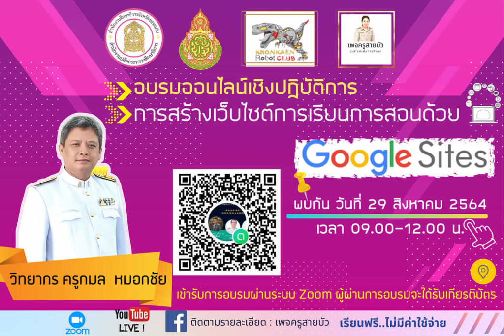 วันนี้ ใบงาน.คอม ข่าวการศึกษา อยากเชิญชวนคุณครูทุกท่าน เข้าร่วมอบรมออนไลน์เชิงปฏิบัติการ “หลักสูตรการสร้างเว็บไซต์การเรียนการสอนด้วย Google Sites” จะจัดขึ้นวันที่ 29 สิงหาคม 2564 เป็นการอบรมและรับเกียรติบัตรฟรี สามารถอ่านรายละเอียดเพิ่มเติมด้านล่างได้เลยค่า