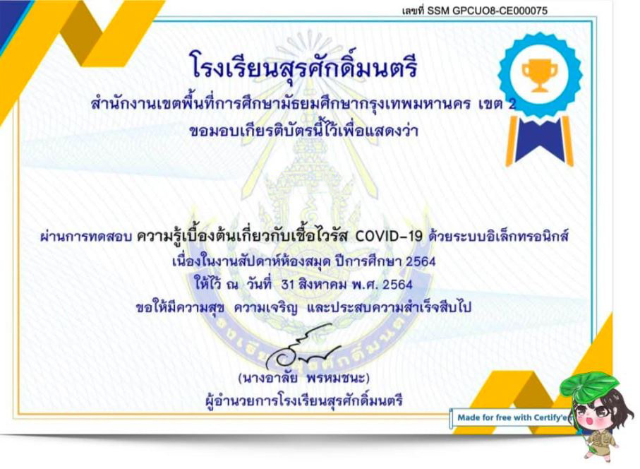 วันนี้ ใบงาน.คอม ข่าวการศึกษา อยากเชิญชวนคุณครูและผู้ที่สนใจ เข้าร่วมทำแบบทดสอบออนไลน์ เรื่อง ความรู้เบื้องต้นเกี่ยวกับเชื้อไวรัส COVID-19 ผ่านเกณฑ์รับเกียรติบัตรฟรี แบบทดสอบนี้จัดทำโดยโรงเรียนสุรศักดิ์มนตรี สามารถทำแบบทดสอบได้ที่ลิ้งค์ด้านล่างเลยค่ะ