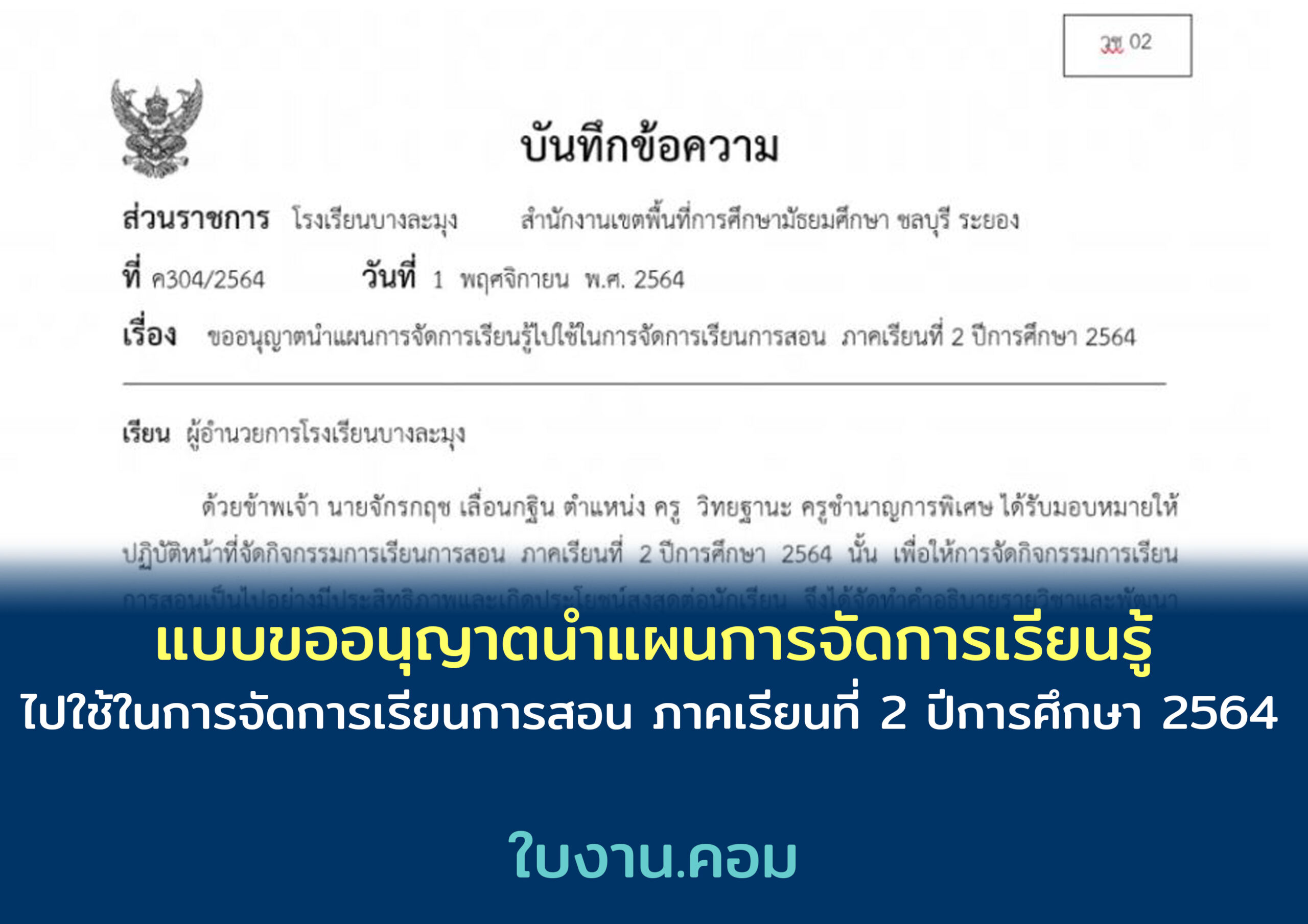 ใบงาน.คอม ข่าวการศึกษา ได้นำไฟล์แบบขออนุญาตนำแผนการจัดการเรียนรู้ไปใช้ในการจัดการเรียนการสอน ภาคเรียนที่ 2 ปีการศึกษา 2564 มีทั้งรูปแบบออนไลน์ และออนไซต์ เครดิตศูนย์พัฒนาวิชาชีพครูโรงเรียนบางละมุงมาฝากกัน คุณครูท่านไหนที่สนใจ สามารถดาวน์โหลดได้ที่ลิ้งค์ด้านล่างเลยนะคะ