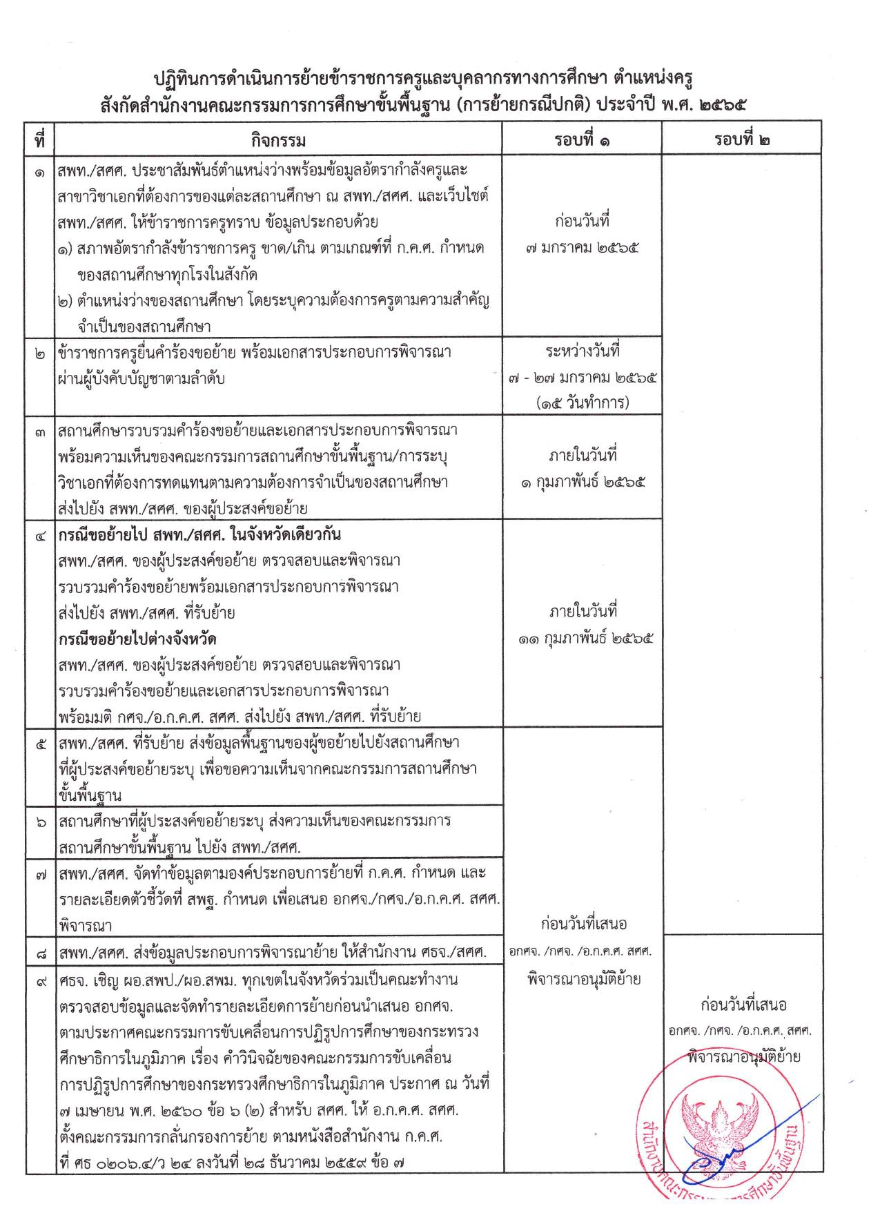 ที่ สำนักงานศึกษาธิการจังหวัด ประกาศตำแหน่งว่างรับย้ายข้าราชการครูและบุคลากรทางการศึกษา ตำแหน่ง ครูผู้สอน  (ตำแหน่งว่างย้ายครู 2565 สพฐ.)