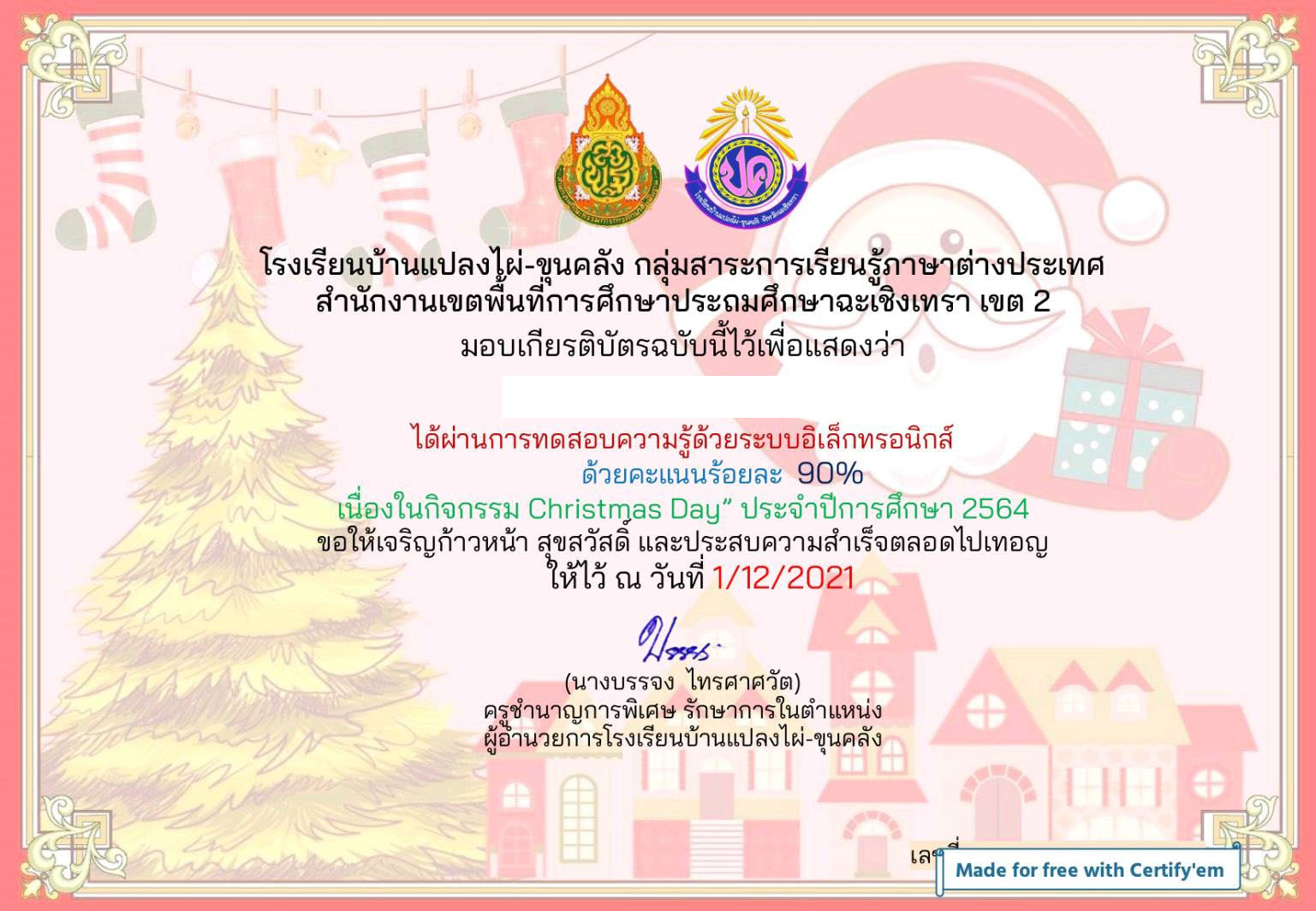 แบบทดสอบออนไลน์ “Christmas Day” โดย โรงเรียนบ้านแปลงไผ่-ขุนคลัง